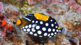ビーチENの定番=ミナミハコフグ幼魚。