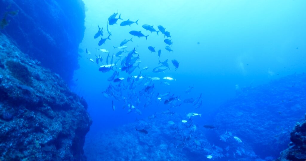 ギンガメアジは浅場と深場の2か所に分かれていました。