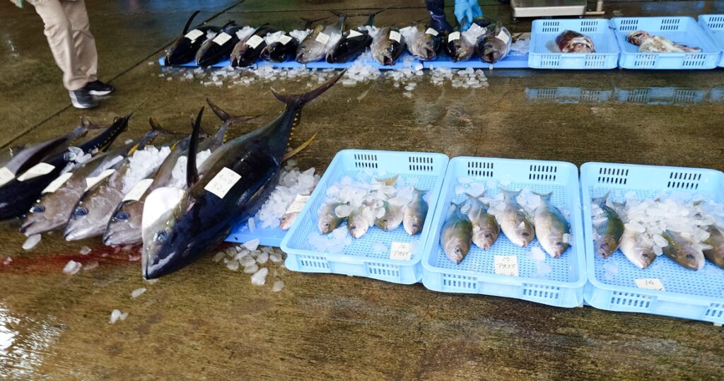 朝はセリを見に漁協へ。