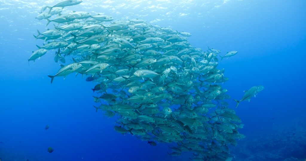 ギンガメアジ浅場の群れ