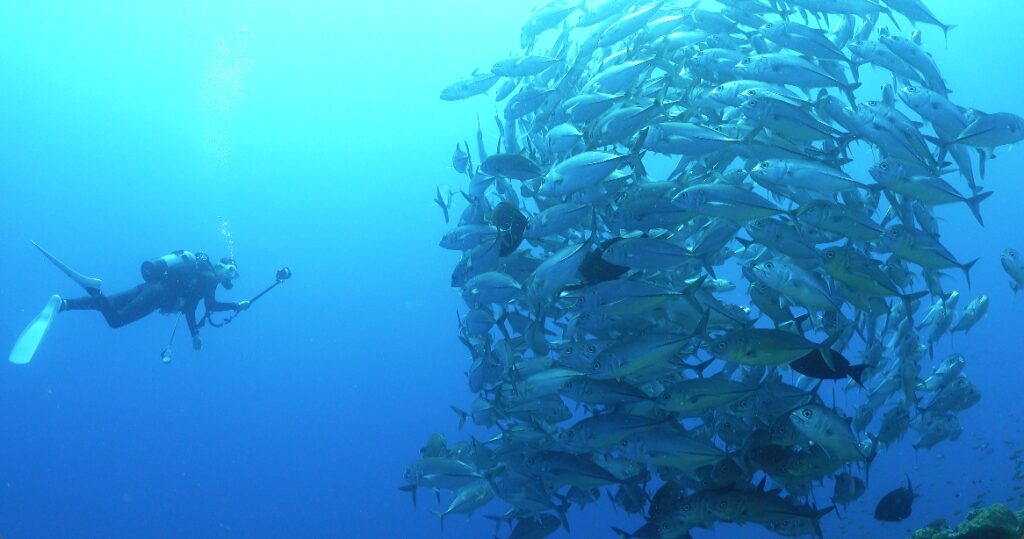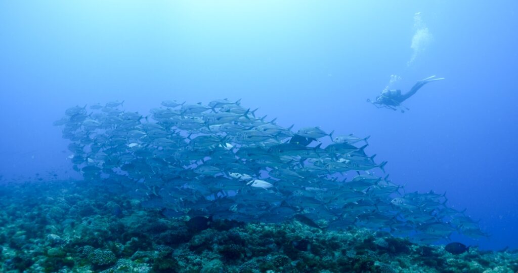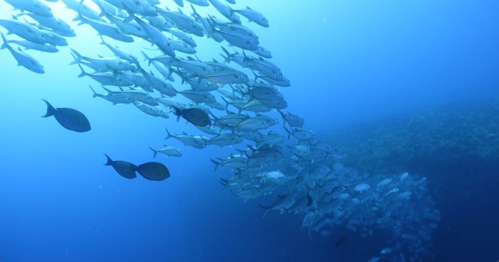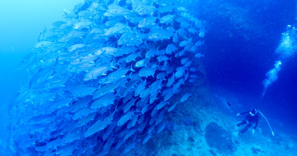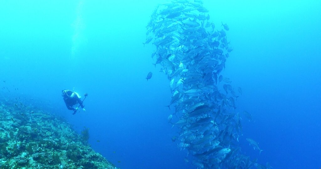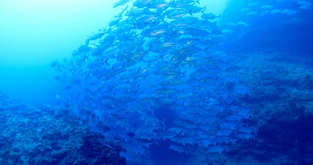 浅場のギンガメアジが深場よりに移動していました。