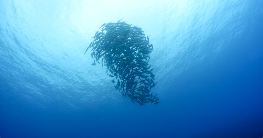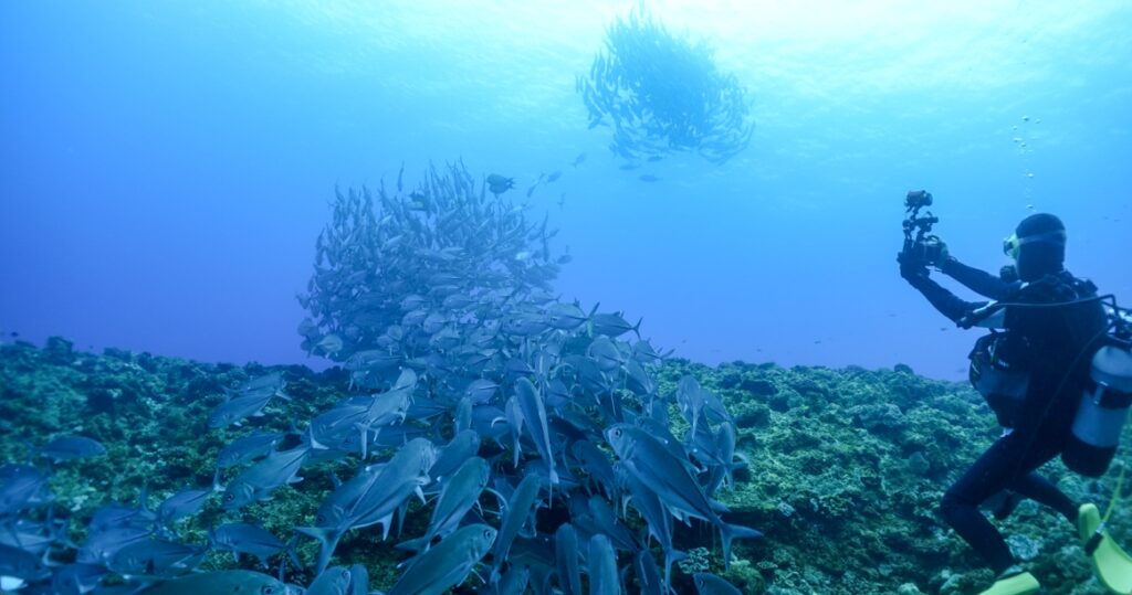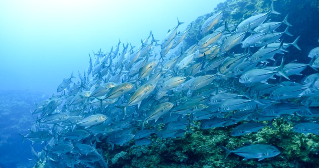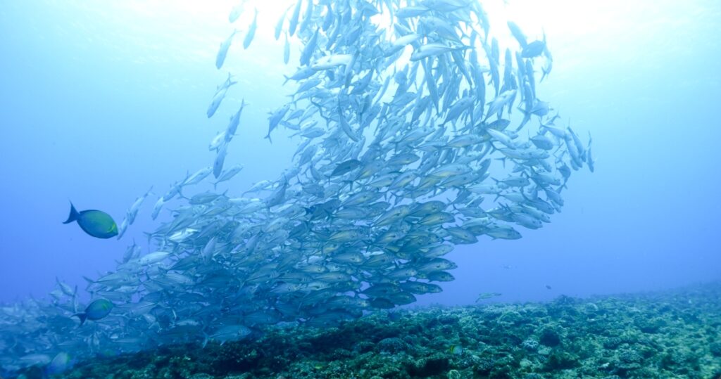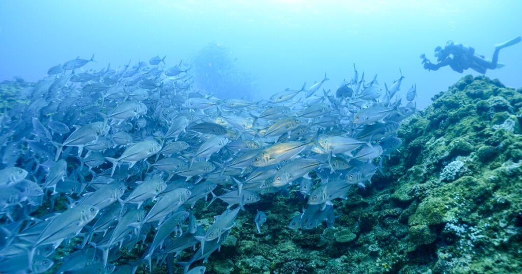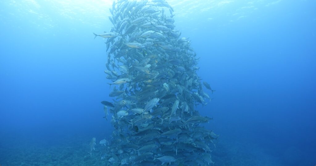 今日のギンガメアジは群れが一緒になったり別れたり。