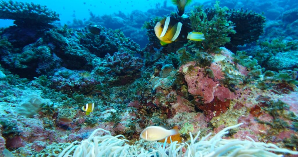 クマノミとハナビラクマノミが同居中
